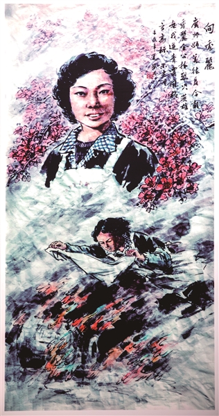 以向秀麗烈士英勇事跡所創(chuàng)作的畫(huà)作。